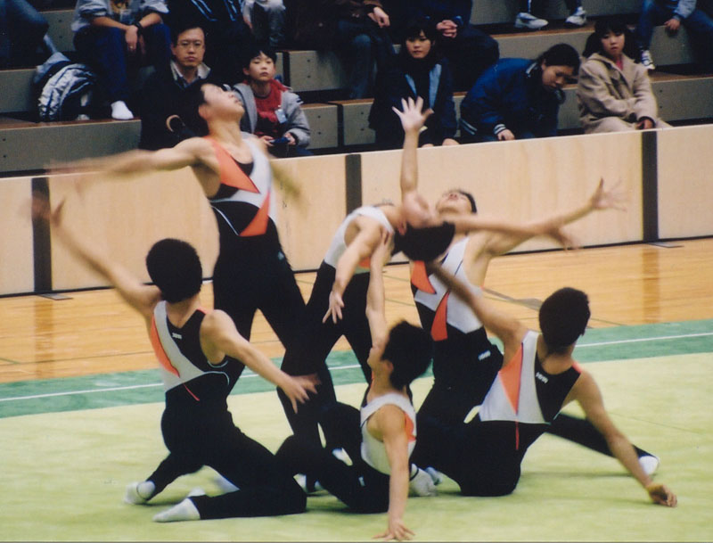 Men's rhythmic gymnastics, in its current form, consist of both Group and Individual competition. Group Competition consisted of 6 gymnasts performing Free-exercise. Individuals compete with apparatuses of Sticks, Rings, Rope and Clubs. As of year 2002, in Japan, there are 1000 Rhythmic gymnasts ranging from school children to adults. There are competitions such as the Inter High School Competition, National Athletics Meet, All Japan Inter-Collegiate Competition, All Japan Junior Championship, All Japan Amateur Championship, and All Japan Rhythmic Gymnastics Championship.